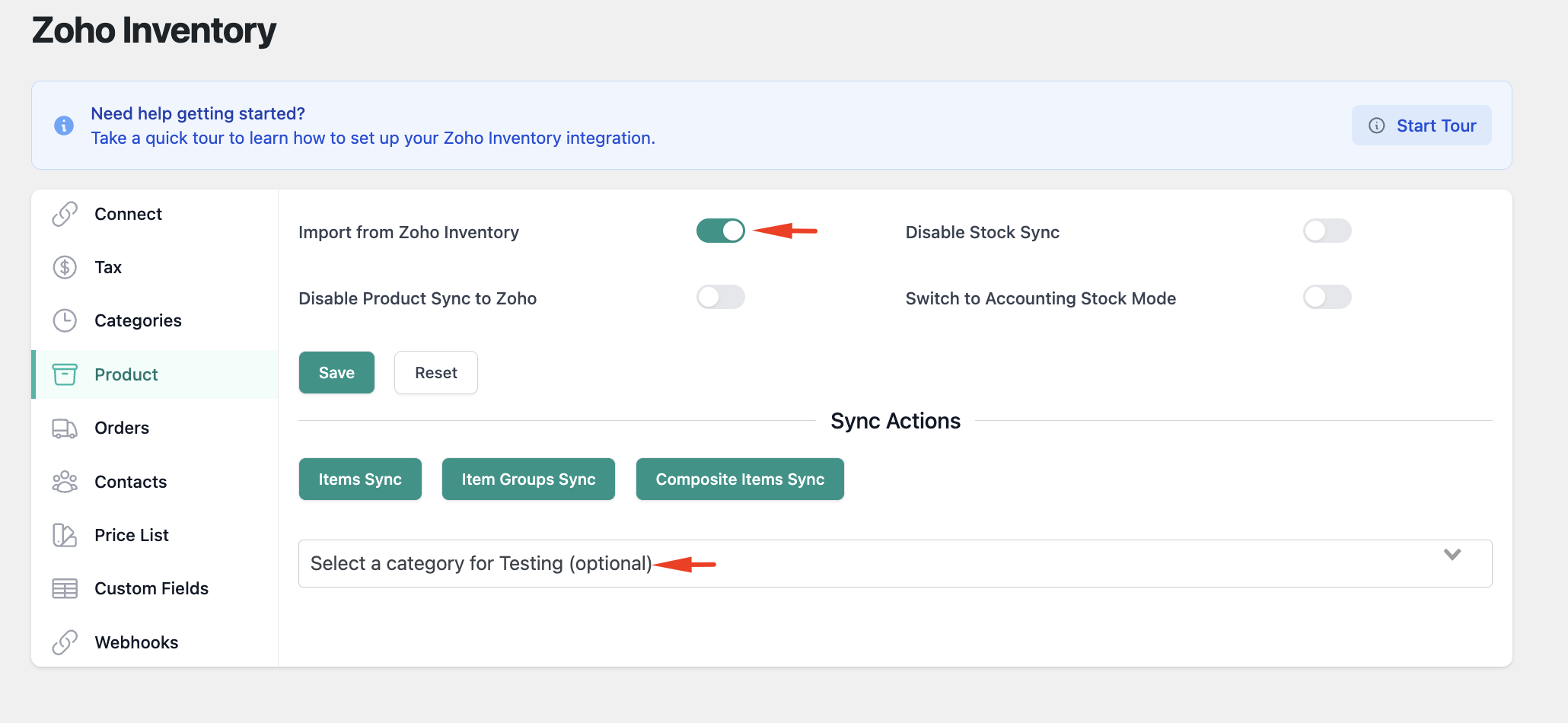 You can also disable the Stock sync completely via its own Toggle, or you can disable the product sync from WooCommerce to Zoho if you only want to import Product (changes) from Zoho to Woo.